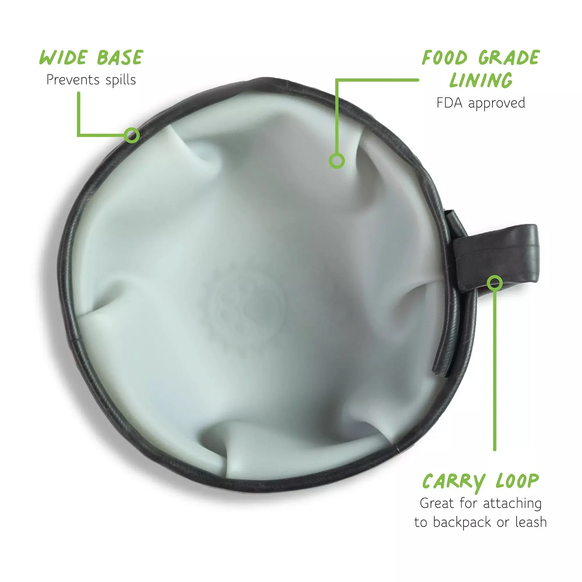 The travel bowl is a perfect addition to your dog gear. The wide and sturdy construction will prevent accidental spills while the compact collapsable design allows you to easily stow away the bowl when not in use. Includes a carry loop for easy attachment to leashes or bags.